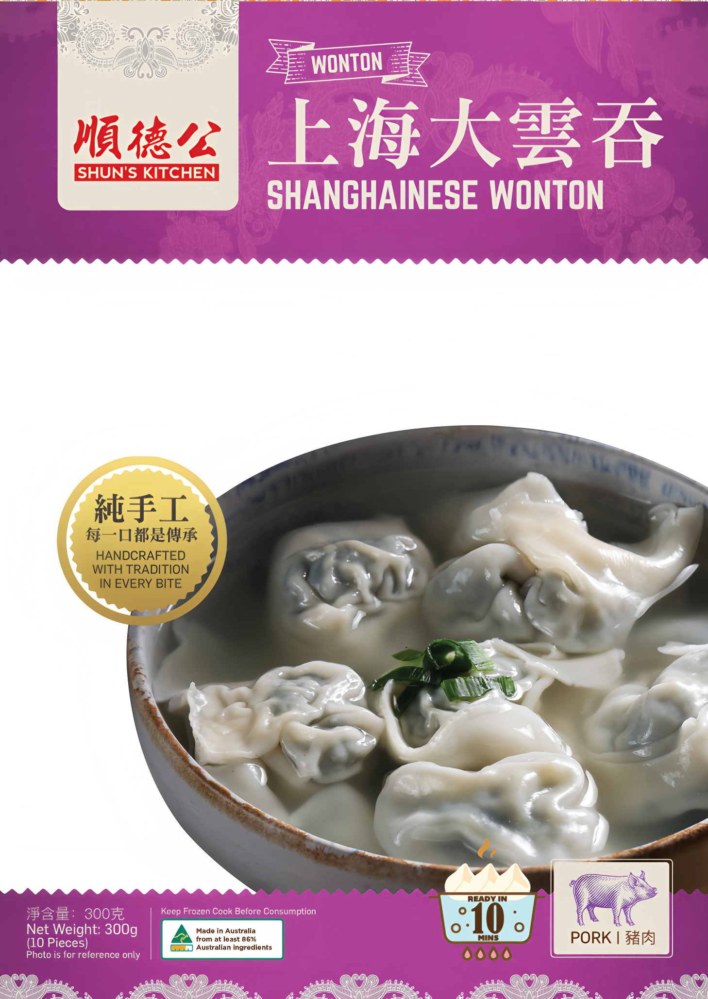 Handcrafted with tradition in every bite. A hearty Shanghainese wonton filled with savoury pork, perfect in a warm broth for comforting meals.