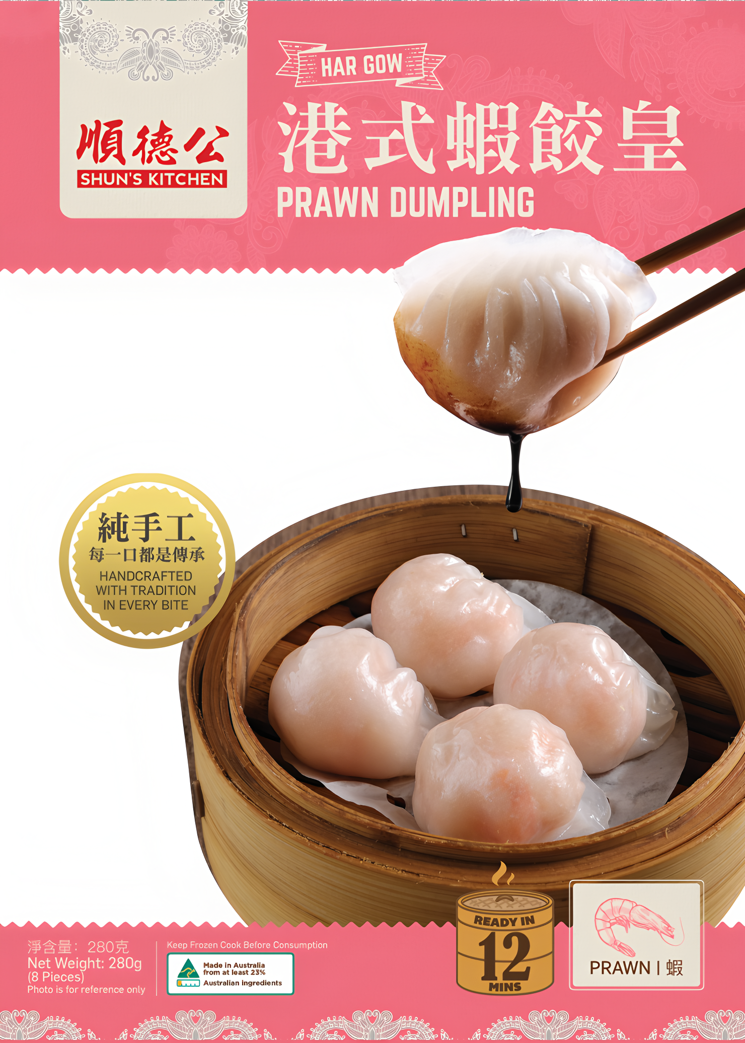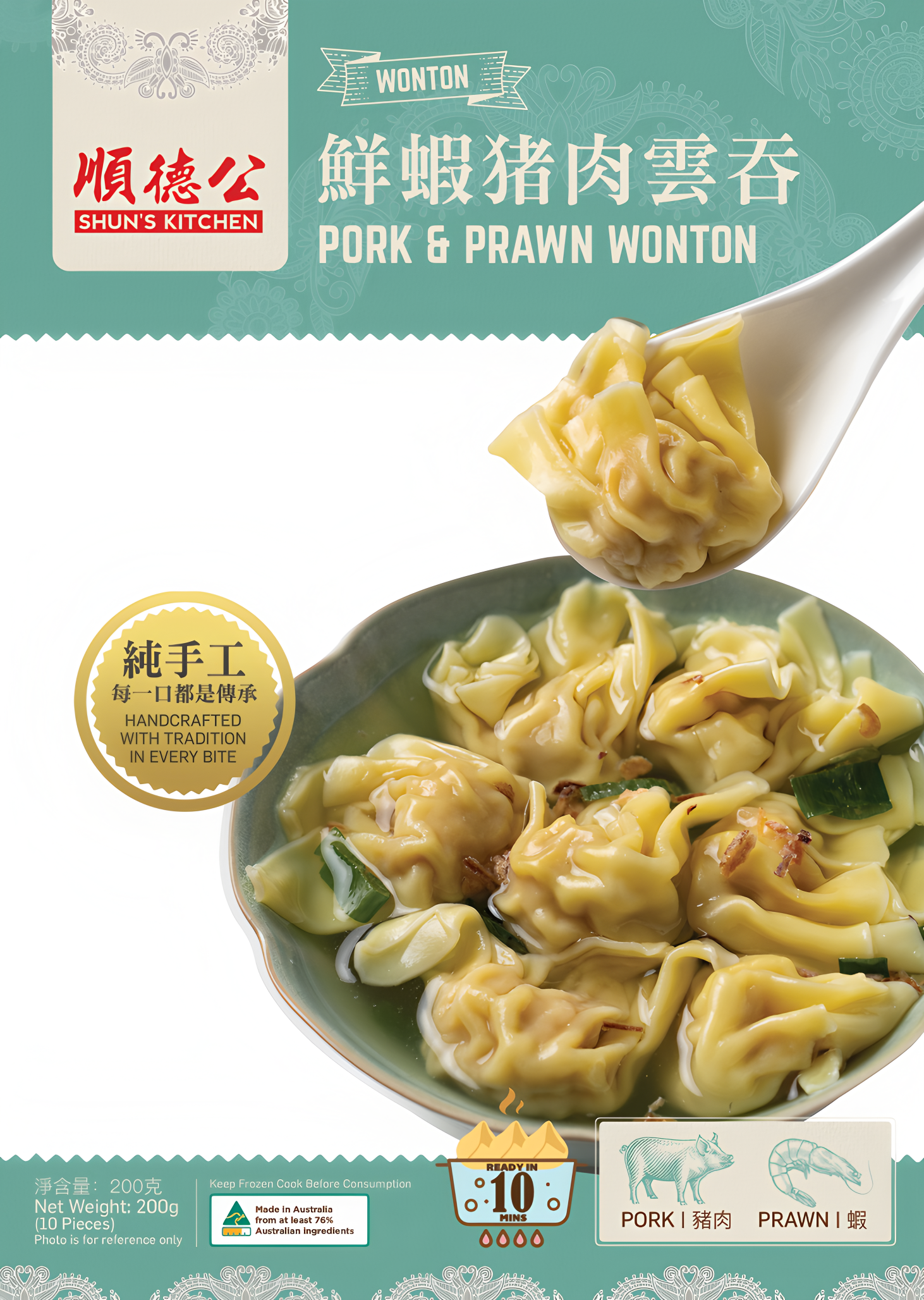 A savoury blend of prawn and pork wrapped in delicate wonton skin. Ready in minutes, delicious in soup or with noodles